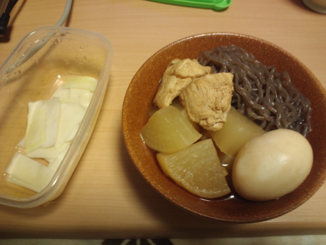煮物なので、おでんより濃いめの味付けで作ったので、口の中がしょっぱい…。