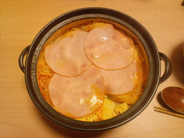 ハム鍋というと豪華に聞こえますが、四枚しか入ってません(笑)