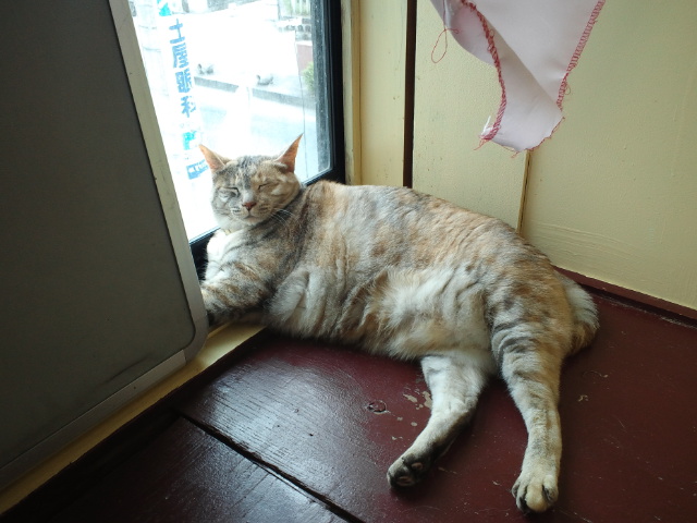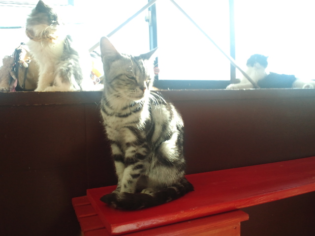 にゃらにゃら寄ってくる猫スタッフの皆様におやつをあげてると、左肩に、ちょっとした重力。振り向くと、私の肩に前足を乗せたにゃんこ(りんちゃん)が「あたちにも!」とせがんでおりました(笑)