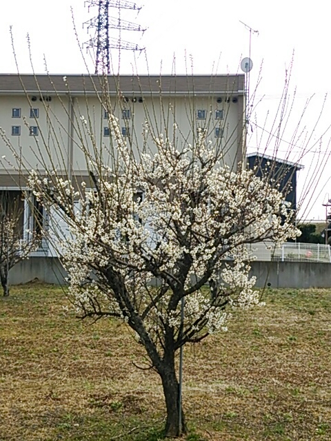 家の近くの梅並木(予定)は、まだ若い木なので、花もまだらですが…。