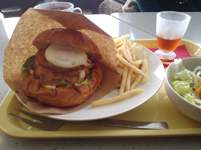 今日は猪苗代の方まで行って、特大バーガーを食べてきました