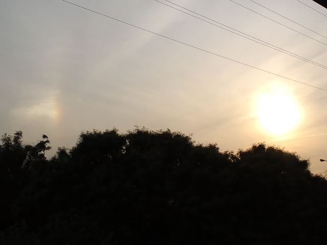 洗濯物を取り込もうと、外を見たら、不思議な虹が。