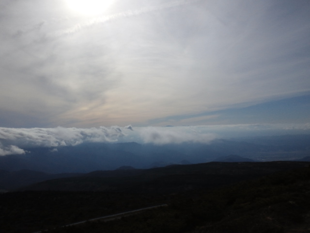 生憎の曇りで見えない…と待っていると、雲が薄くなって見えた!!