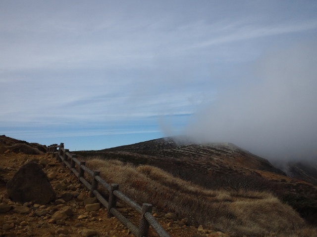 秋晴れ日でしたが、頂上には霧が!