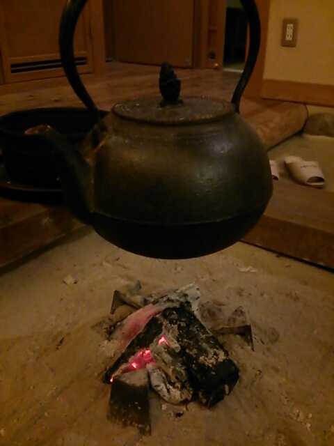 囲炉裏つき!ちゃんと火も入ってますよ♪