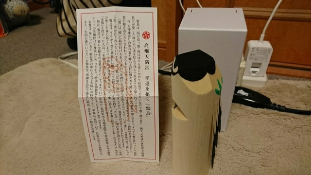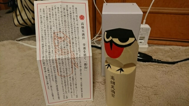 神棚に置こうかと思ったのですが、飾る場所はどこでもよいそうなので、可愛いので目につくここに。