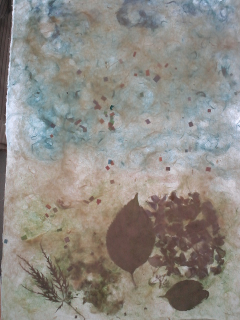 本物のアジサイを貼り付けたのですが、どうやら上に流した紙が多かったみたいです。