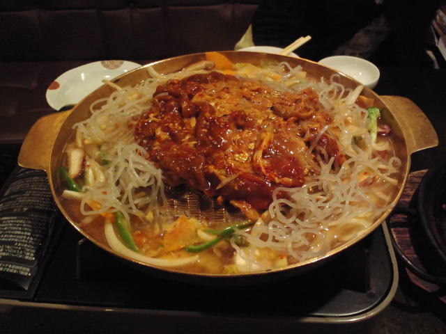 夕ご飯は通りで見つけた韓国料理屋さんでチヂミと・・・名前忘れましたが、豚肉ジンギスカンとお鍋を混ぜたような料理(笑)をいただきました。