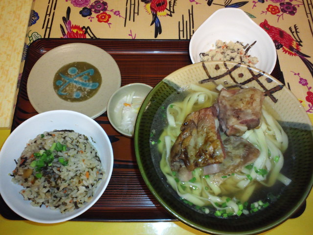 夕御飯は、ホテル近くの食堂で、沖縄そば&ジューシーセットを食べました