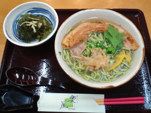 続きましては、空港近くのアウトレットモールで食べたヨモギの入った麺の汁そば(名前忘れましたw)