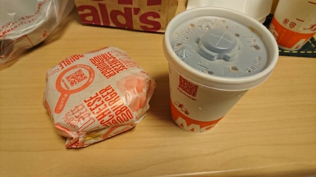 今日はさんちゃんの日だったので、マックのダブルチーズバーガーとドリンク無料で貰ったー!(*≧∀≦*)