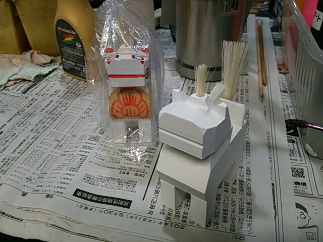 木彫りの三春駒を絵付けです~。