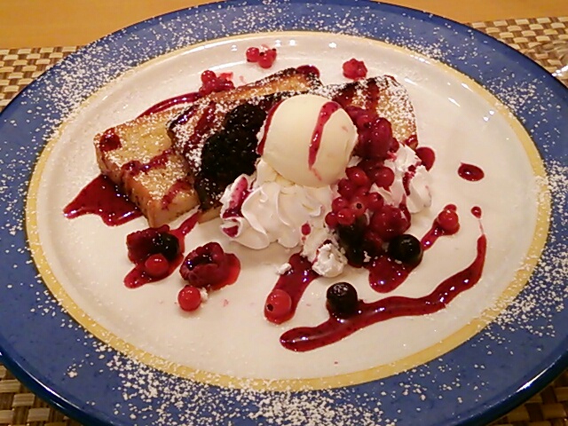 サーモンたっぷりのサラダに、とろとろ卵のパスタに、フレンチトースト!めっちゃ美味しかった( 〃▽〃)