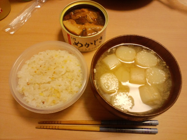 生姜入り麩の味噌汁を作り、ストックしておいた缶詰めを食べようと缶詰めカゴを見ていたら、その中の一つに『三陸』という文字が!!