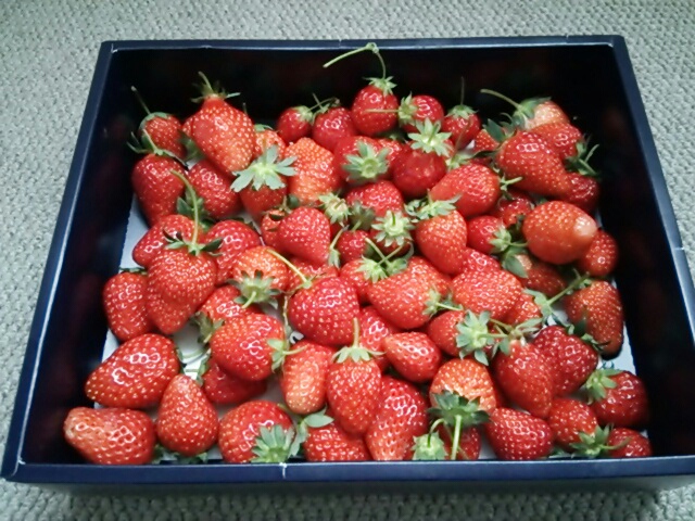 そんな発言をした翌日の今日、朝5時から苺狩りをしてきた華榴さん達に朝から苺を貰いました( 〃▽〃)