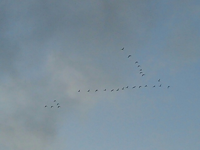 帰ってきて駐車場で鳥の声がするなあと上を見たら白鳥が飛んでたよヽ(・∀・)ノ