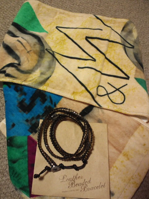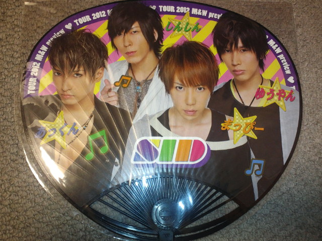 定番のタオルと、痛いうちわと、明希プロデュースのレザービーズブレスレット。