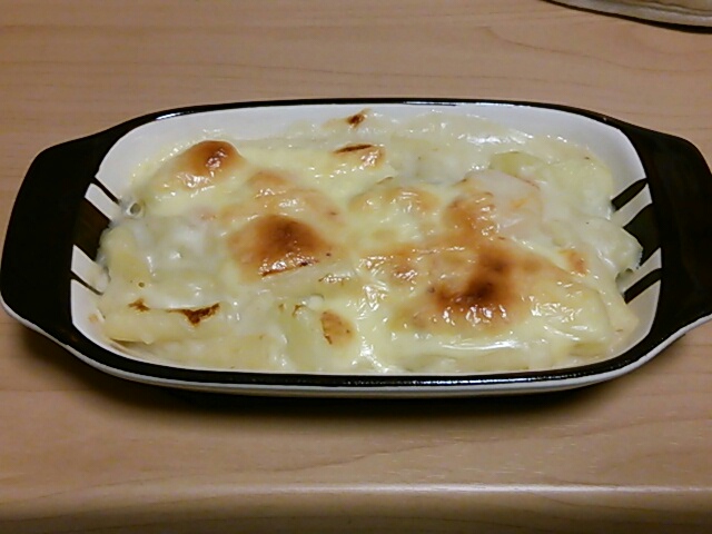 グラタンのもとを使ったらあまりに簡単で、こんなことならもっと早くチャレンジすべきだったな…とか思いながら、家にはオーブン無いのでトースターで焼いてみた結果。