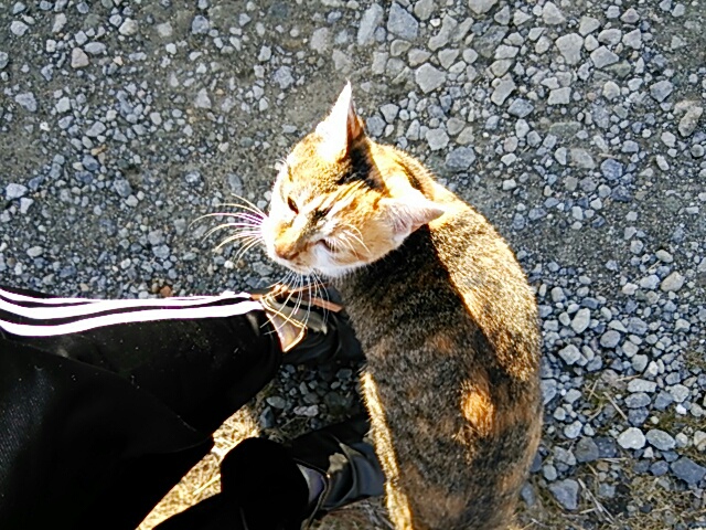 なんて人懐っこいコだ…と思いつつ、ナデナデしていたら、ネコさん、膝に乗って抱っこの催促!